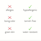 Hypoallergénique – Sans nickel ni plomb, doux pour tous les types de peau.