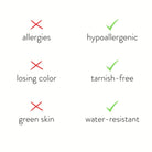 Hypoallergénique – Sans nickel ni plomb, doux pour les peaux sensibles.