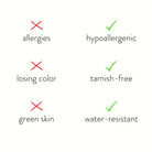 • Hypoallergénique – Doux pour les peaux sensibles, sans nickel ni plomb.