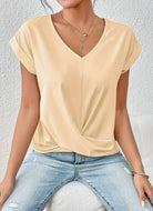 Conçu pour celles qui apprécient à la fois le confort et l'élégance, ce top raffiné à col V et boutons décoratifs apporte une touche décontractée et gracieuse à votre garde-robe quotidienne. Son drapé souple et ses détails soigneusement placés créent une silhouette flatteuse qui met en valeur la confiance et le style.